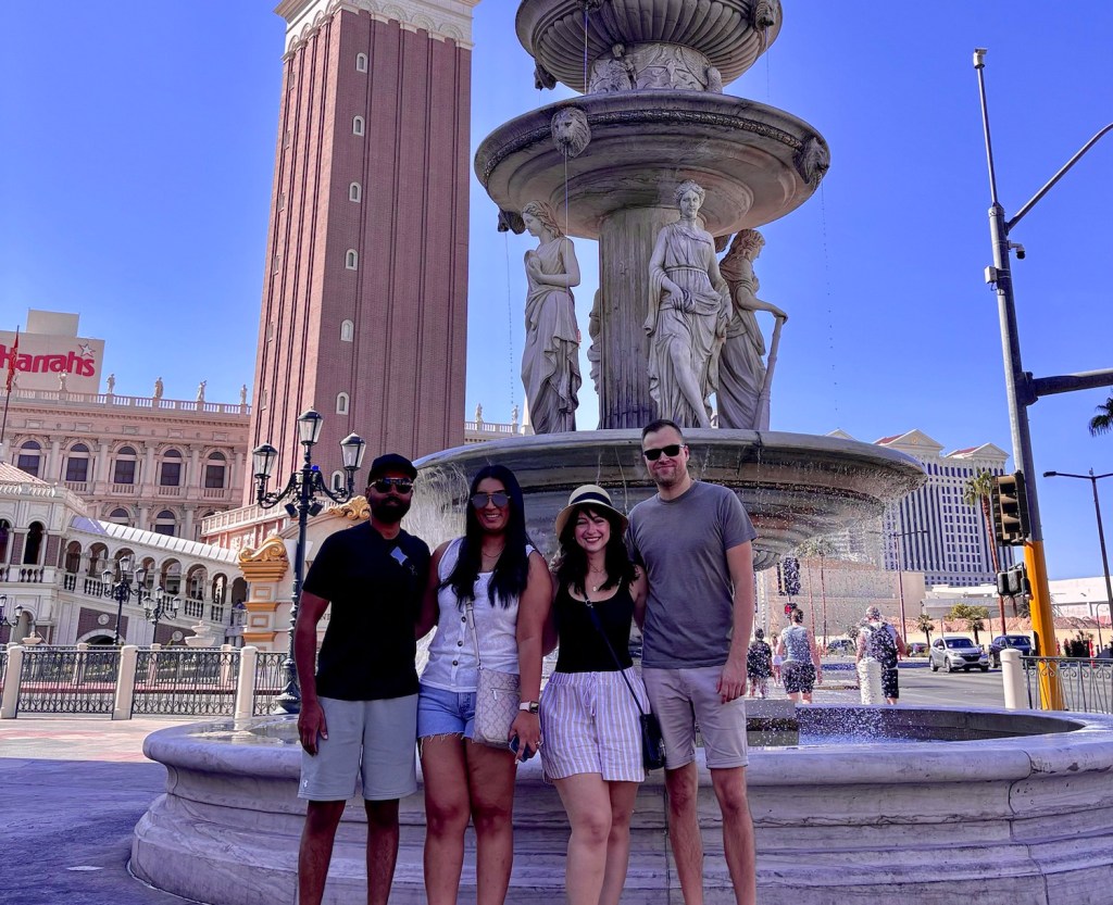 What happens in Vegas! So about once every 10 years, some forces pull me to Vegas and this time it was our first couples trip with friends Patrick and Natasha. Vegas is a polarizing city and while not my favourite place to go – I firmly believe that there is something for everyone. We chose to stay on The Strip at The Treasure Island Resort as 2/4 of our crew were Vegas first-timers. With that in mind, we definitely checked off some obligatory Vegas experiences – slot machines ✓ pool party ✓ Fat Tuesday ✓ My favourite experience of the trip kind of surprised me actually as I’d somehow avoided it until now. We ended up splurging on a cabana rental (mostly to guarantee us shade from the 41°C temps) at the pool and I had the best time drinking pina coladas with strangers and a DJ. I’m sure this experience varies wildly but the vibes at our hotel were chill and I was mostly just loving the diversity of faces at the pool. We were definitely on the younger end of the crowd and I loved seeing so many middle aged folks partying it up. Definitely not the rager that I’d imagined. I’ve probably had my fill of ciagarette filled casinos and overpriced cocktails for the next ten years or so… but who knows… if the right residency pops up or someone wants to take me to F1, I may be back again sooner than later.